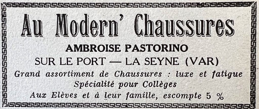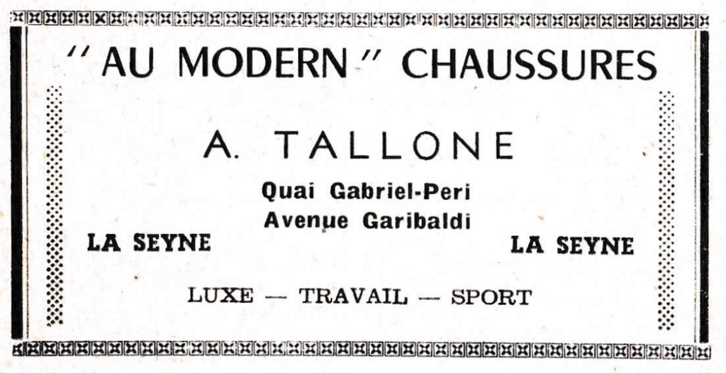À noter que cette publicité est rédigée en italien pour cibler l’importante communauté italienne présente à La Seyne à cette époque…