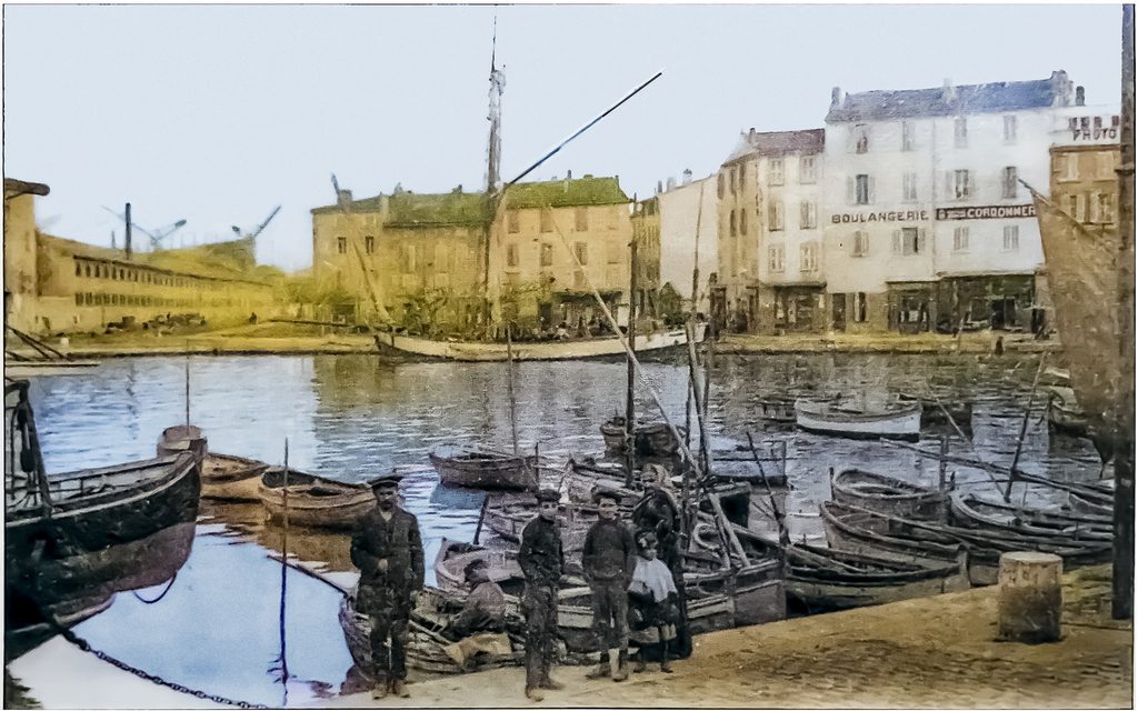 Partant du haut du quai, de l’îlot Verlaque qui sera détruit pendant la dernière guerre, on recense pêle-mêle sur les photos et cartes postales, une boulangerie, une cordonnerie, un atelier photographique, plus tard après guerre le cinéma Kursaal devenu le Rex au 27, l’annexe des dames de France au 29 (« Paris-La Seyne »), le restaurant de la Paix, une fabrique de meubles ameublement menuiserie, le dépôt central du petit Marseillais puis du Petit Journal Petit Provençal, un bar-tabac à côté du Grand Bar de la Marine, les meubles Gasparini, un salon de coiffure, le Petit Marseillais, la pharmacie Félix Renoud à l’angle de l’avenue des Sablettes.