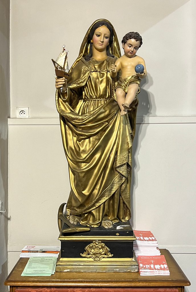 L’église de La Seyne possède aussi une Vierge honorée en Algérie Française, Notre-Dame de Stora rescapée d’une tempête en Méditerranée le 25 janvier 1841, événement durant lequel trente et un navires au mouillage ont coulé dans le golfe de Stora (est algérien) sauf La Marne, une corvette de charge dont le capitaine avait formé le vœu de la déposer dans le premier port atteint. En l’occurrence Stora. Rapatriée à La Seyne en 1964, elle se trouve maintenant dans la chapelle qui lui est consacrée, annexe de l’église paroissiale Notre-Dame-du-Bon-Voyage*.