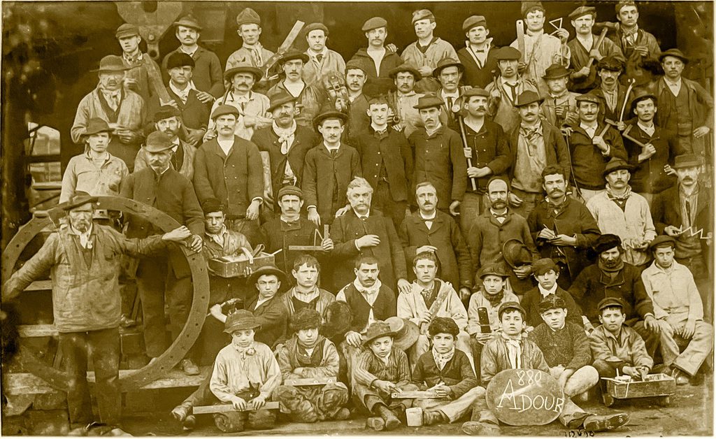 ces magnifiques ateliers où tout le jour, sur les carcasses en construction, les marteaux joyeusement soulevés, font vibrer en l’air libre la bonne chanson du travail qui réconforte l’esprit.