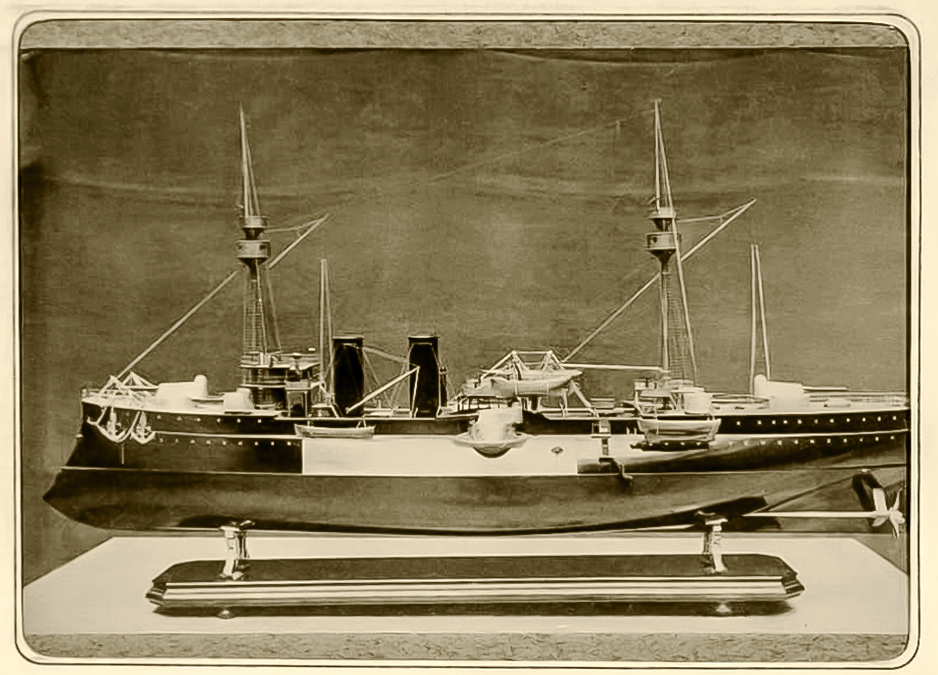 A l’exposition universelle de 1889 les F&C de La Seyne présentèrent leur savoir-faire de l’époque, la tourelle Canet (voir photo) et quatre reproductions de navires construits aux Chantiers, les modèles riches du Cécille un croiseur rapide, du Pelayo (photo) un cuirassé, du Brésil un paquebot de croisière et de l’Itsukushima un garde-côte japonais, maquettes dues à deux ouvriers d’élite, L. Arène et L. Burgard…