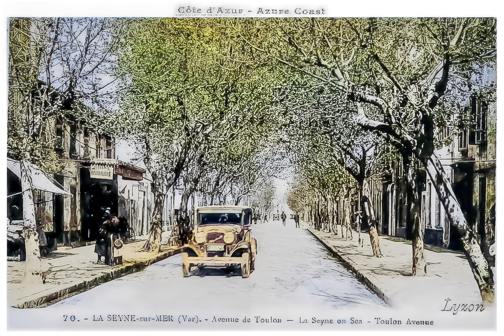 Le Chemin-Neuf, l’ancienne avenue de Toulon, l’ avenue Gambetta, du lavoir St Roch à la fabrique de couleurs-vernis-mastic « V. Content, ancienne maison Daumas* » fondée en 1883…en passant par le restaurant des quatre nations (plus tard le Bec-Fin), la Bourse du Travail, la fabrique de boissons gazeuses de Joseph Abran, l’atelier de sellerie-bourrellerie Sage Père & Fils, la gendarmerie nationale, l’atelier de carrosserie Foglino Frères, le coiffeur, les bars, des fabricants de meubles, une entreprise de peinture, les établissements de grains et fourrages Roubeuf Frères, etc, etc…