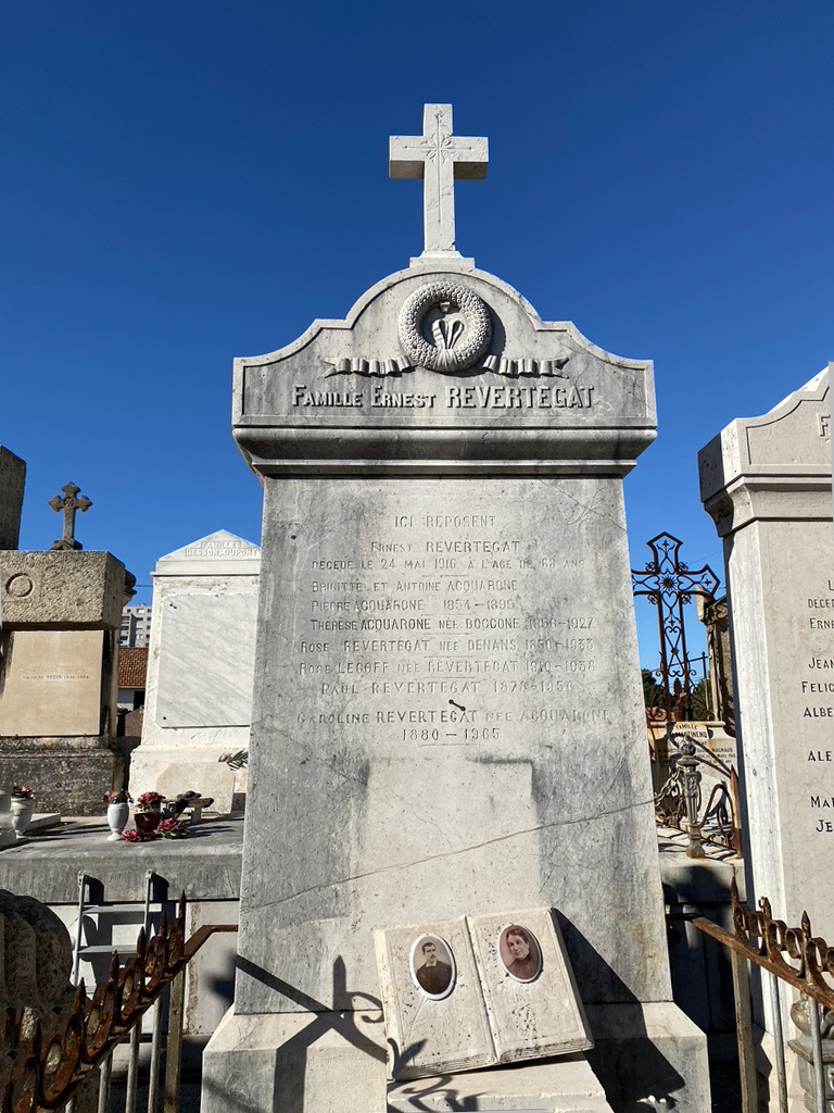 Au recensement de la Rue Cyrus Hugues on retrouve Barthélémy Acquarone, vermicellier avec sa famille et ses 2 domestiques Modeste Bologna et Elisa Gandolfo.
